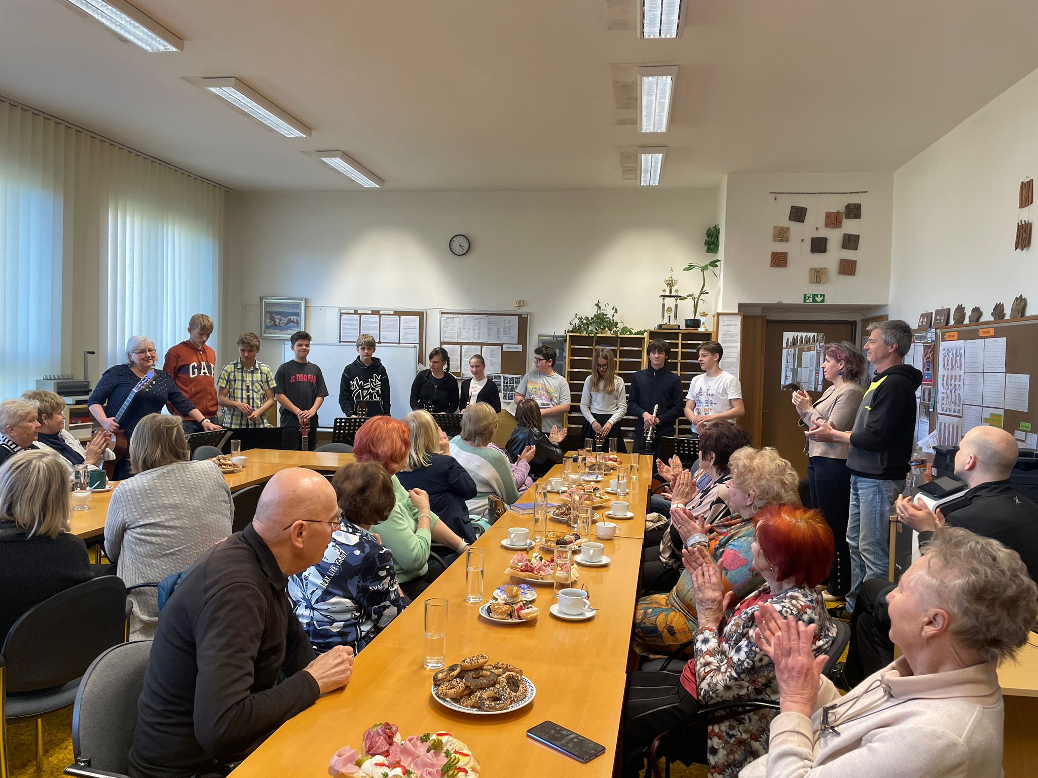 Příležitost oslavit dodatečně Den učitelů společným povídáním a vzpomínkami měli současní i dřívější učitelé školy 7. dubna odpoledne v naší sborovně.