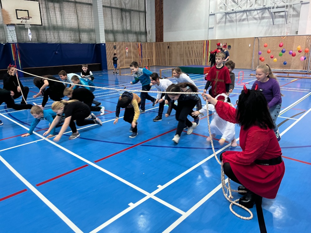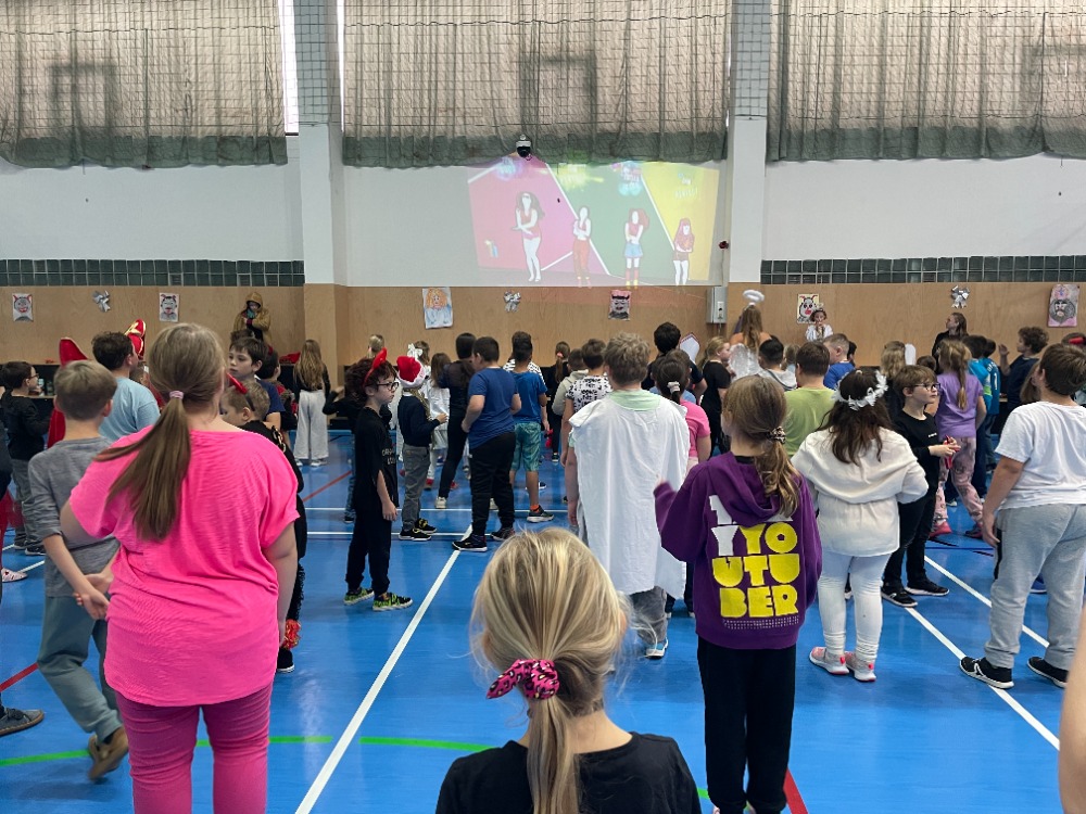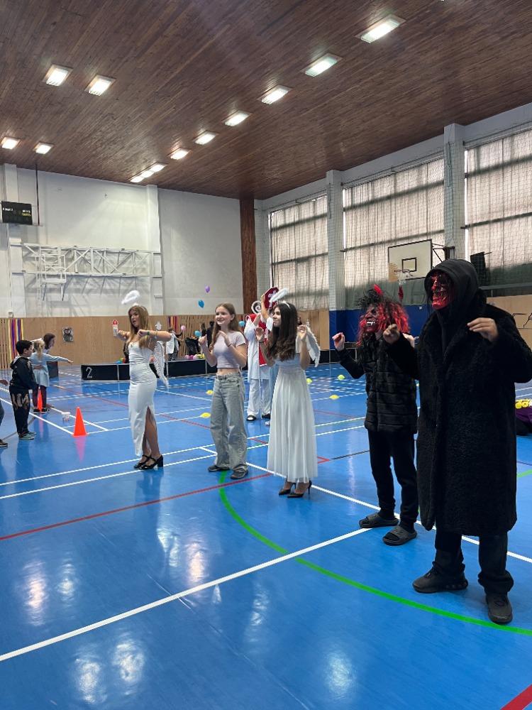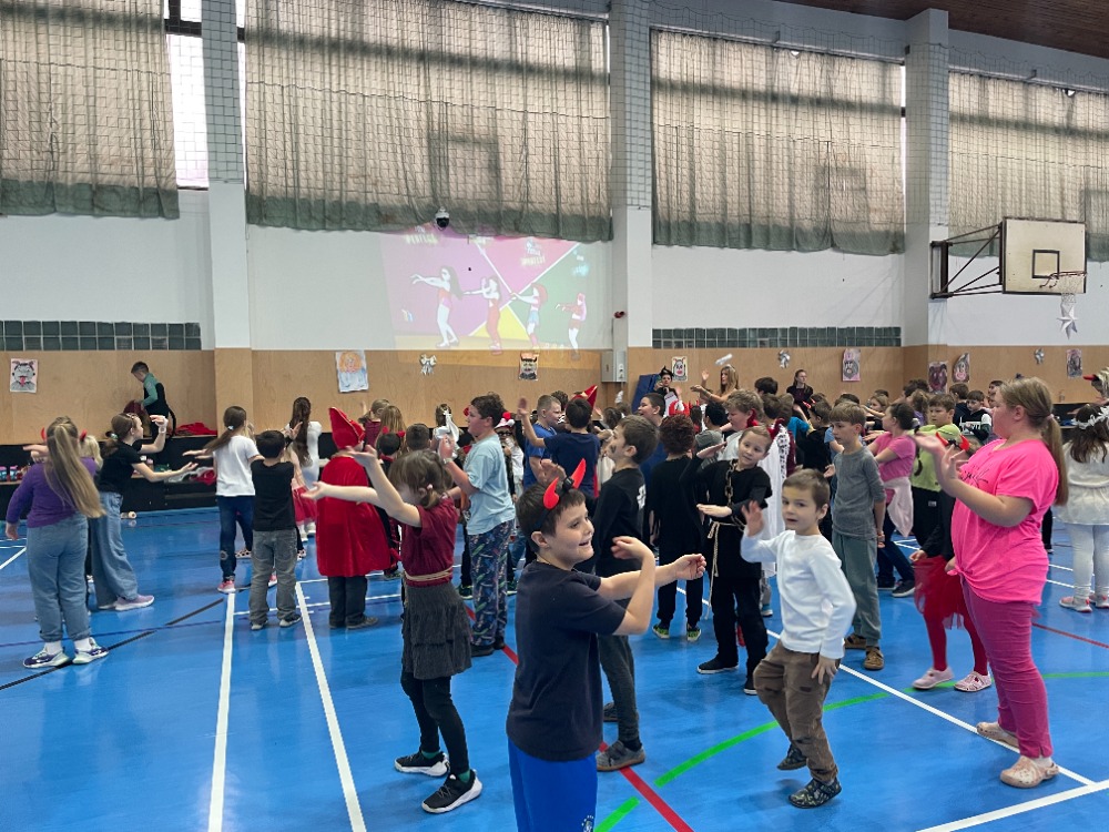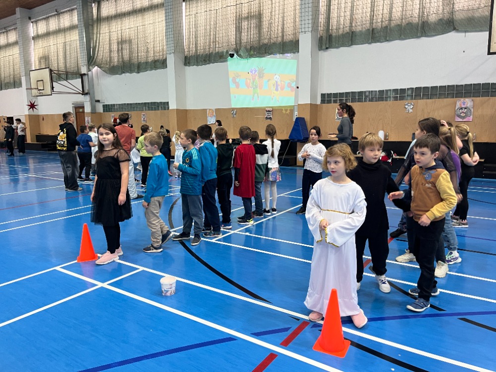 Novinkou bylo promítání just dance z projektoru, za jehož instalaci děkujeme panu učiteli Kapitánovi, protože písničky na stěně měly největší úspěch. Skvělý den pro malé čertíky a andílky skončil sladkou odměnou.