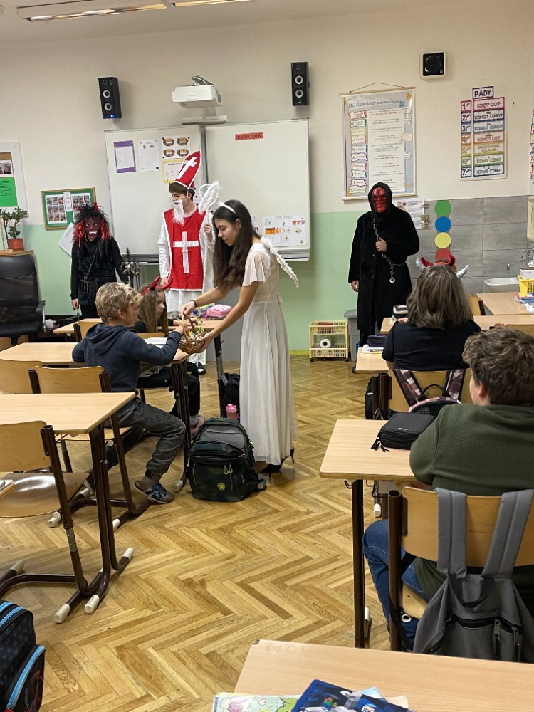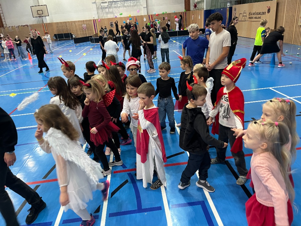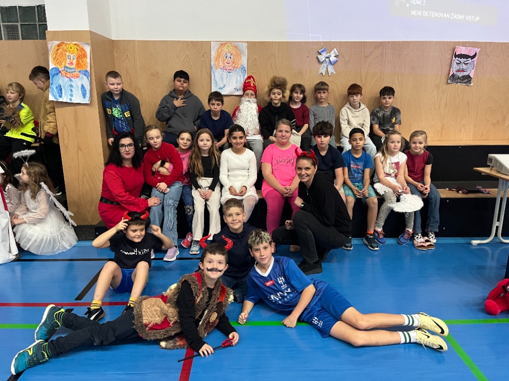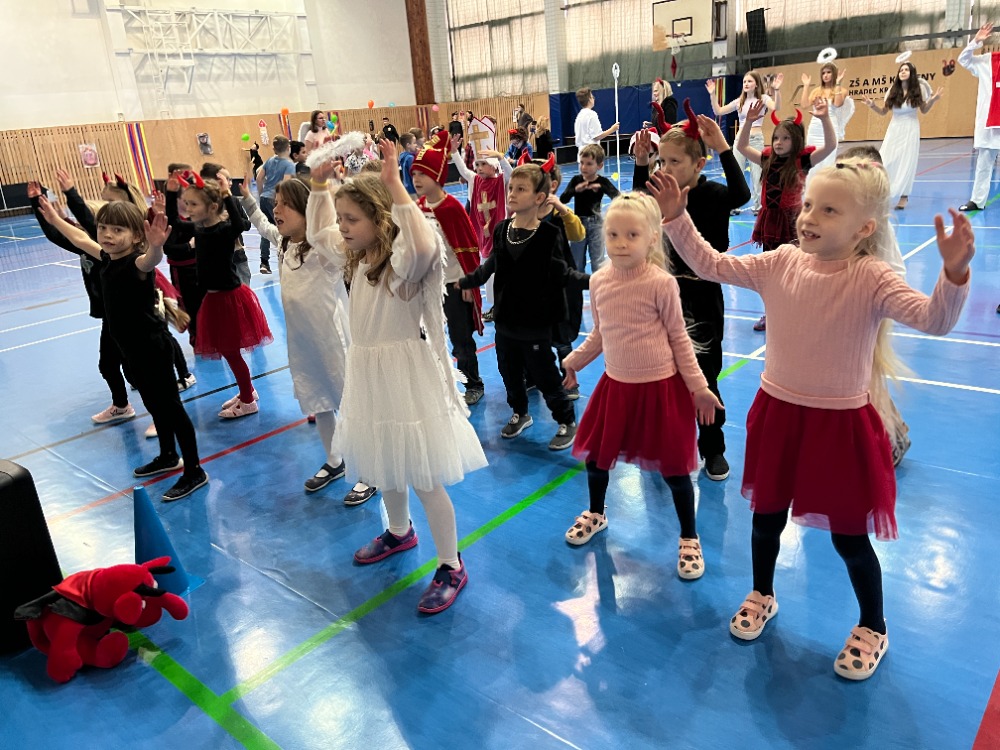 Jako každý rok dopoledne navštívili ve třídách na 1.stupni (i na druhém a ve školkách) 5.prosince Mikuláš, andělé a čerti z devátých tříd. Pak si děti opravdu užily čertovské soutěžení a tancování ve školní hale, které pro ně připravili paní učitelky z 1.stupně spolu s asistentkami a velkou pomoc poskytli i členové žákovského parlamentu.
