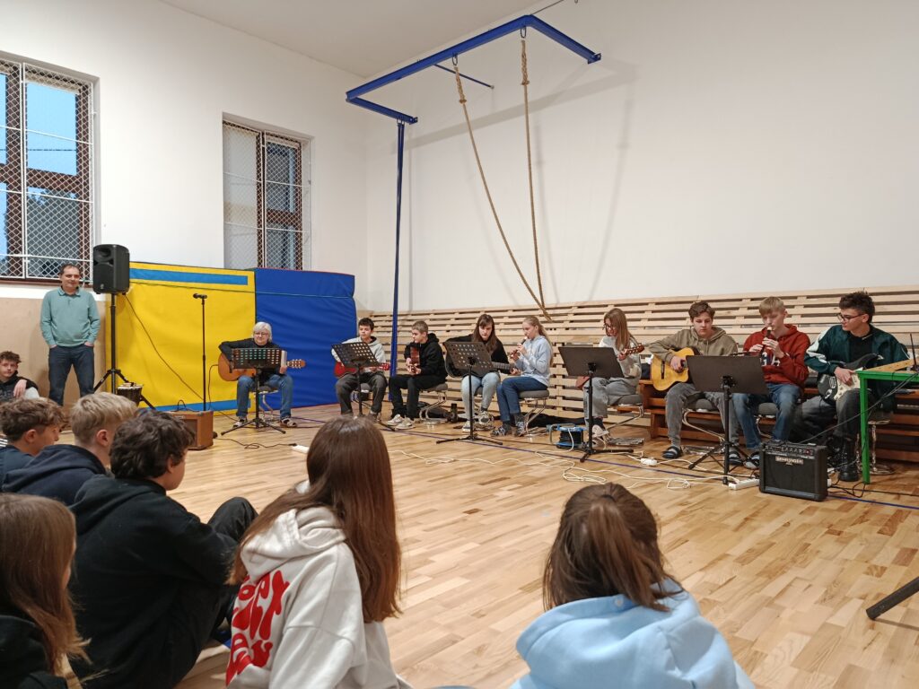 V pondělí 15. prosince při etické výchově jsme navázali na loňskou tradici a nechali jsme se pozvat od hráčů na kytary a flétny do malé tělocvičny na společné zpívání koled. Pár posledních hodin hudební výchovy jsme už v této oblasti ladili formu.