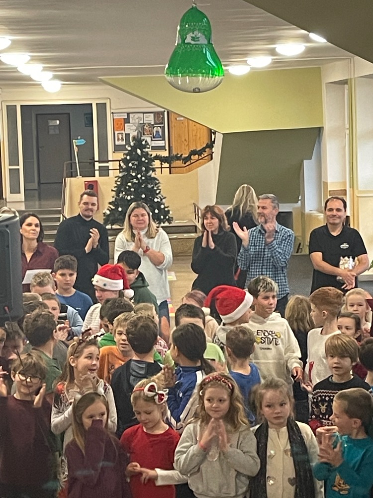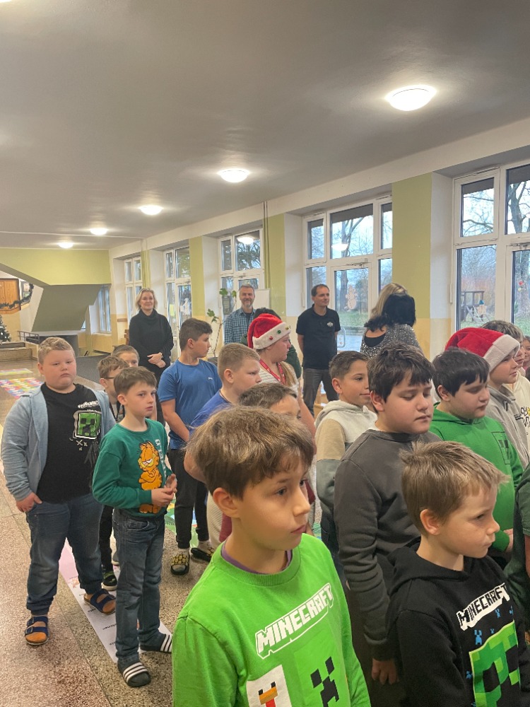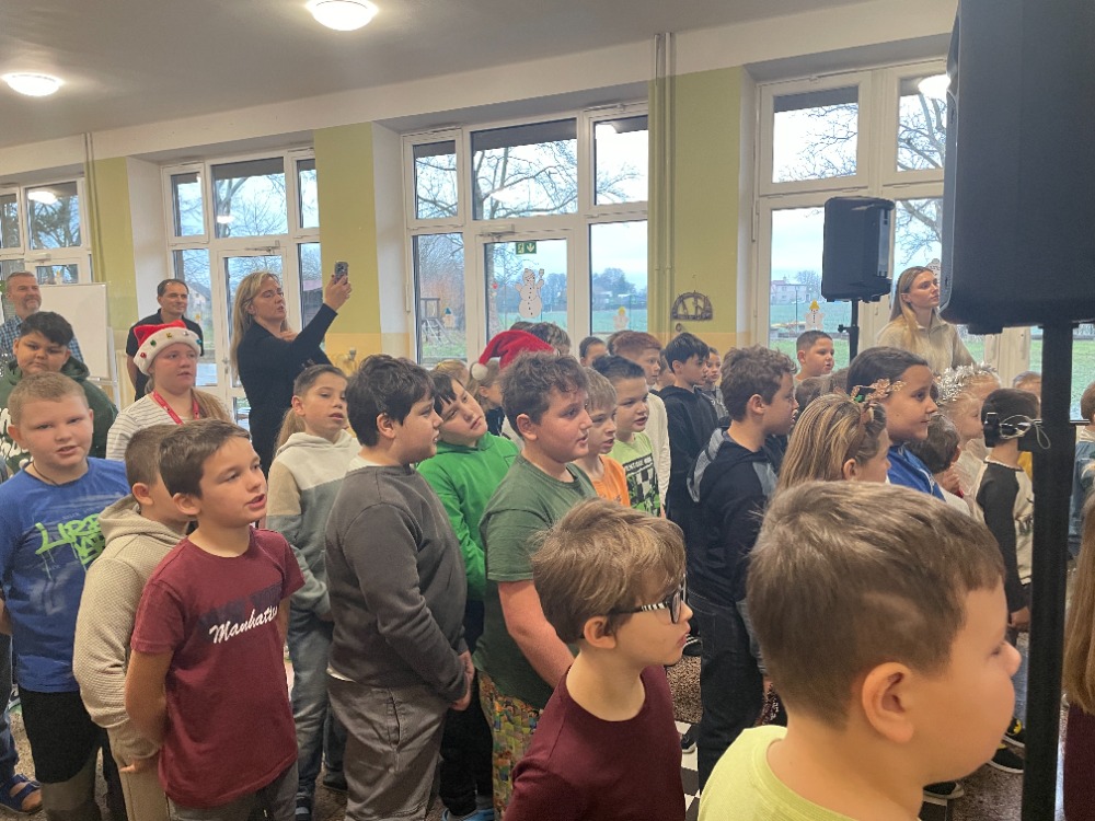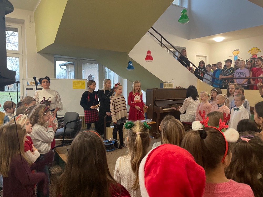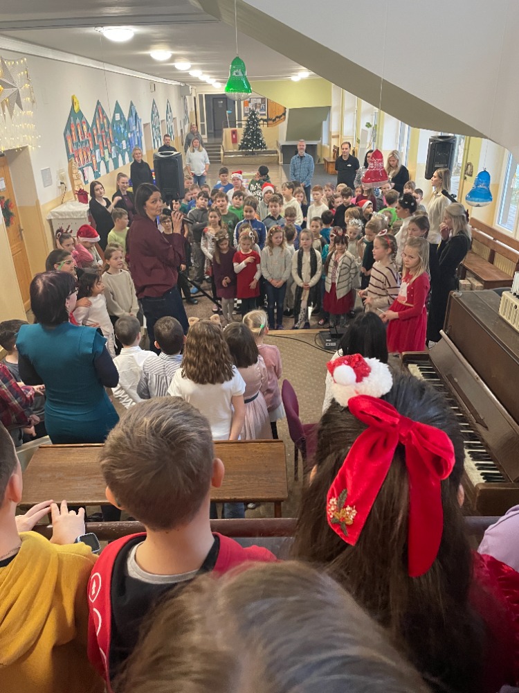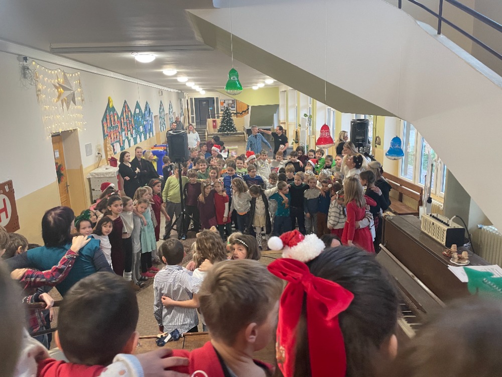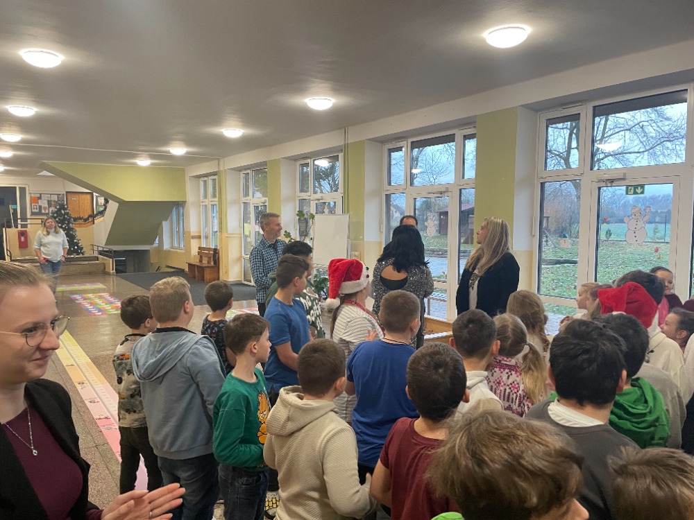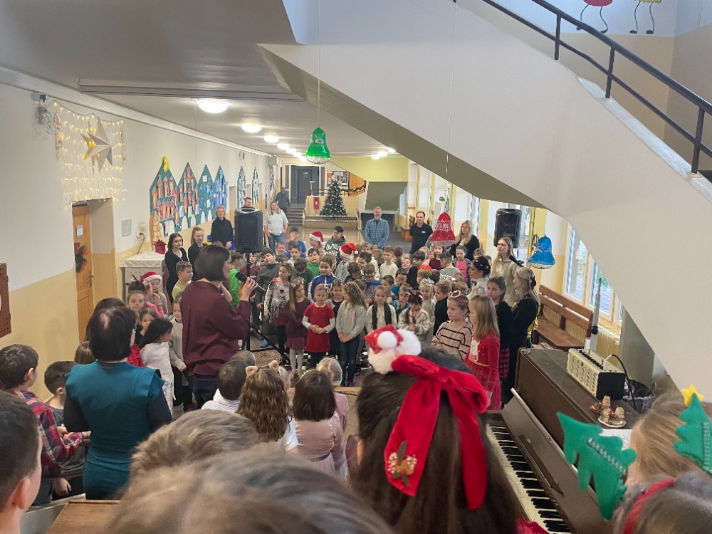 V pátek jsme pak všichni společně zazpívali vedení školy a dalším divákům nacvičené koledy a vánoční písničky za skvělého doprovodu paní učitelky Zahradníčkové na klavír a kytaru. Některé děti také doplňovaly zpěv na hudební nástroje. Sólo na flétničku předvedla žákyně ze 4.třídy Lucka Kulhánková.