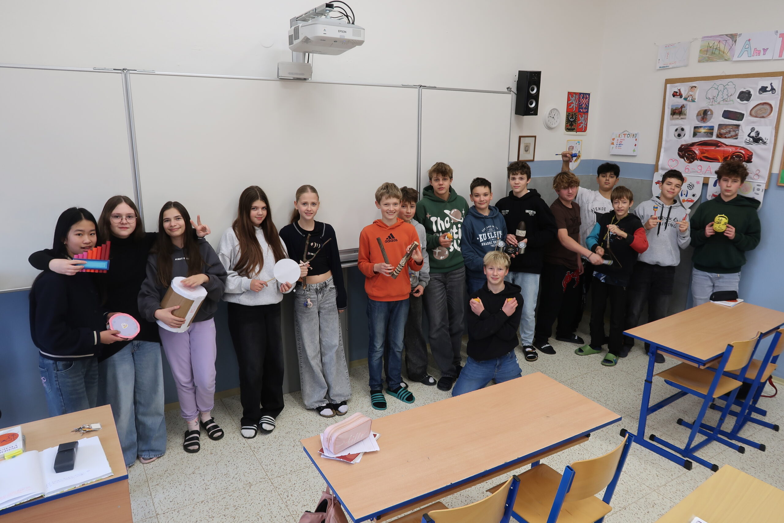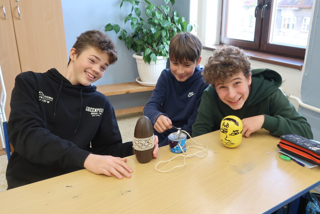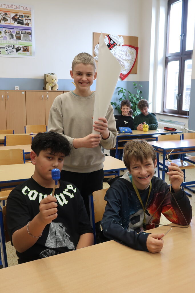 Letos se žáci sedmých tříd při hudební výchově pustili tradičně do vymýšlení a výroby jednoduchých rytmických nástrojů. Využívali materiál, který již doma k ničemu nesloužil. Mohl jim dokonce pomáhat někdo z rodiny. Pak o svém nástroji prezentovali před ostatními.