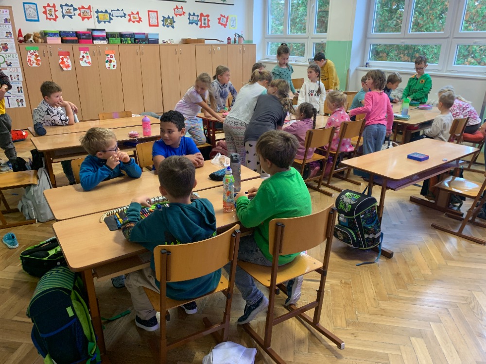 Ve středu 8.října k nám do školy zamířili předškoláčci z našich mateřských škol, aby si vyzkoušeli, jaké to bude, až nastoupí do první třídy a zároveň aby se seznámili se staršími dětmi.