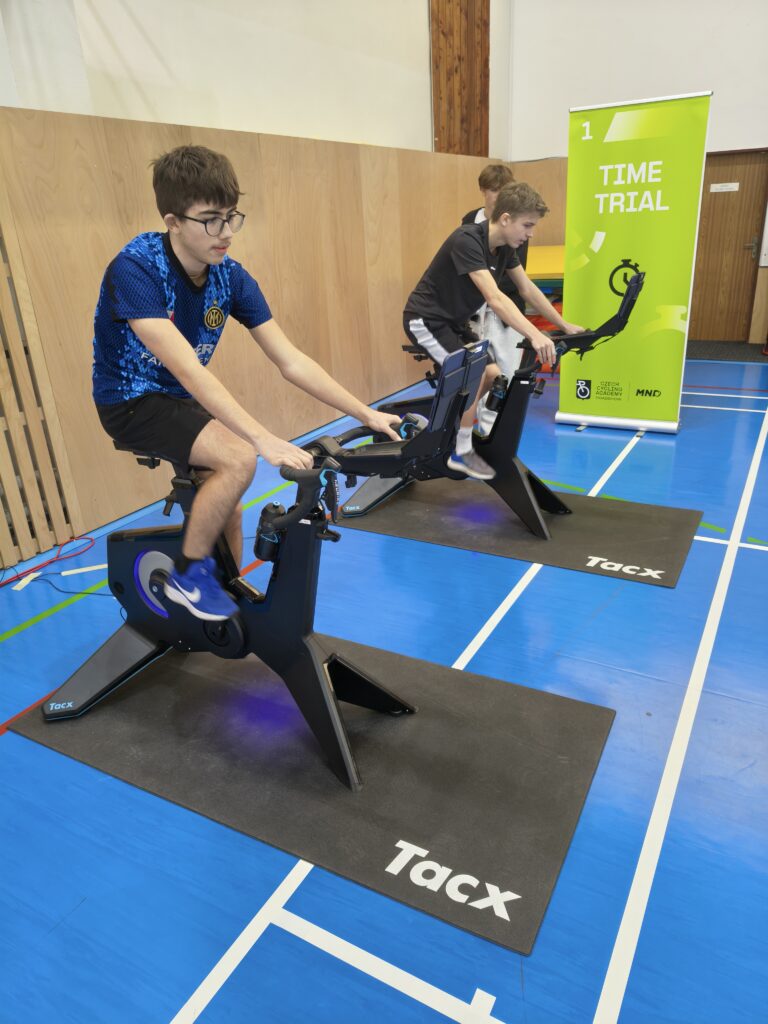 Děti se na trenažérech virtuálně ocitly přímo na trati závodu Czech Tour. Po testování během pár dní obdrží každý účastník elektronicky vyhodnocený formulář se zpětnou vazbou.