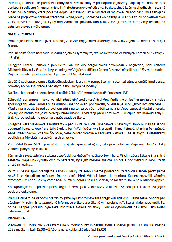 Slovo ředitele školy – ohlédnutí za uplynulým pololetím.