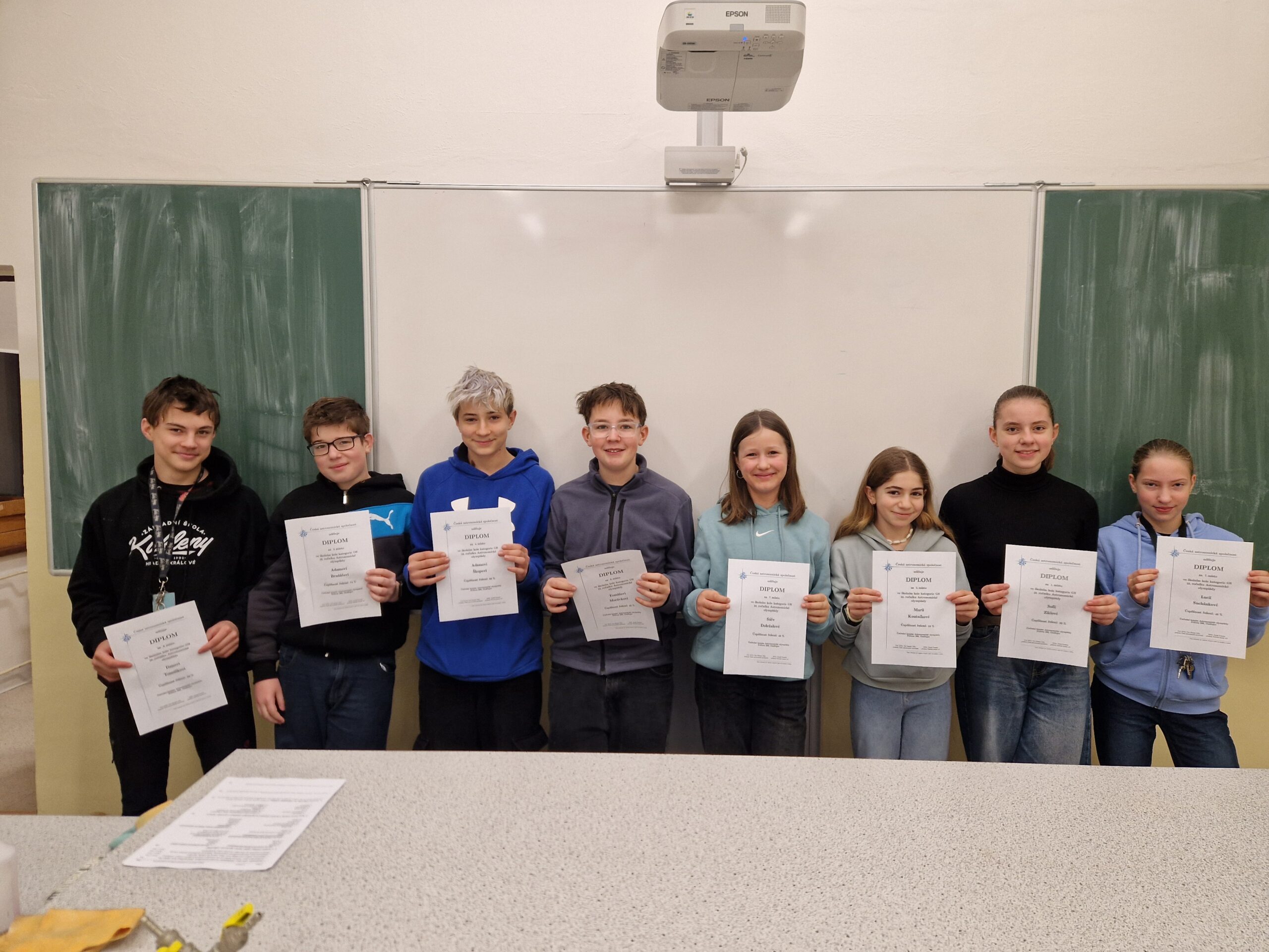 Dne 9. 12. 2025 proběhlo na naší škole školní kolo Astronomické olympiády pro 6. a 7. ročníky. Žáci se na soutěž poctivě připravovali, což přineslo skvělé výsledky – z 10 účastníků jich 9 uspělo a postupují dál.