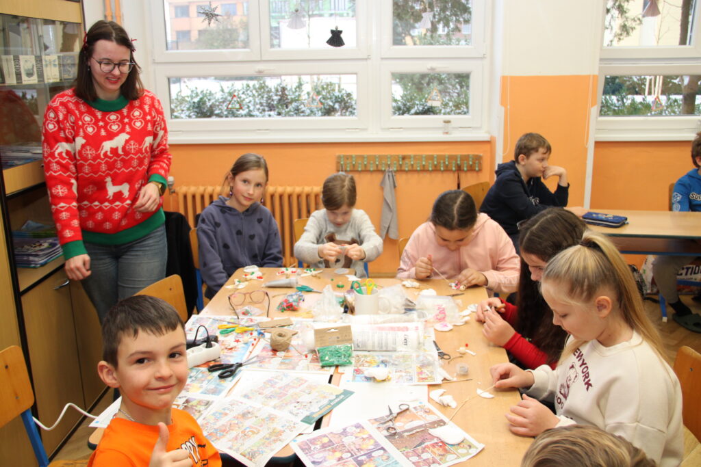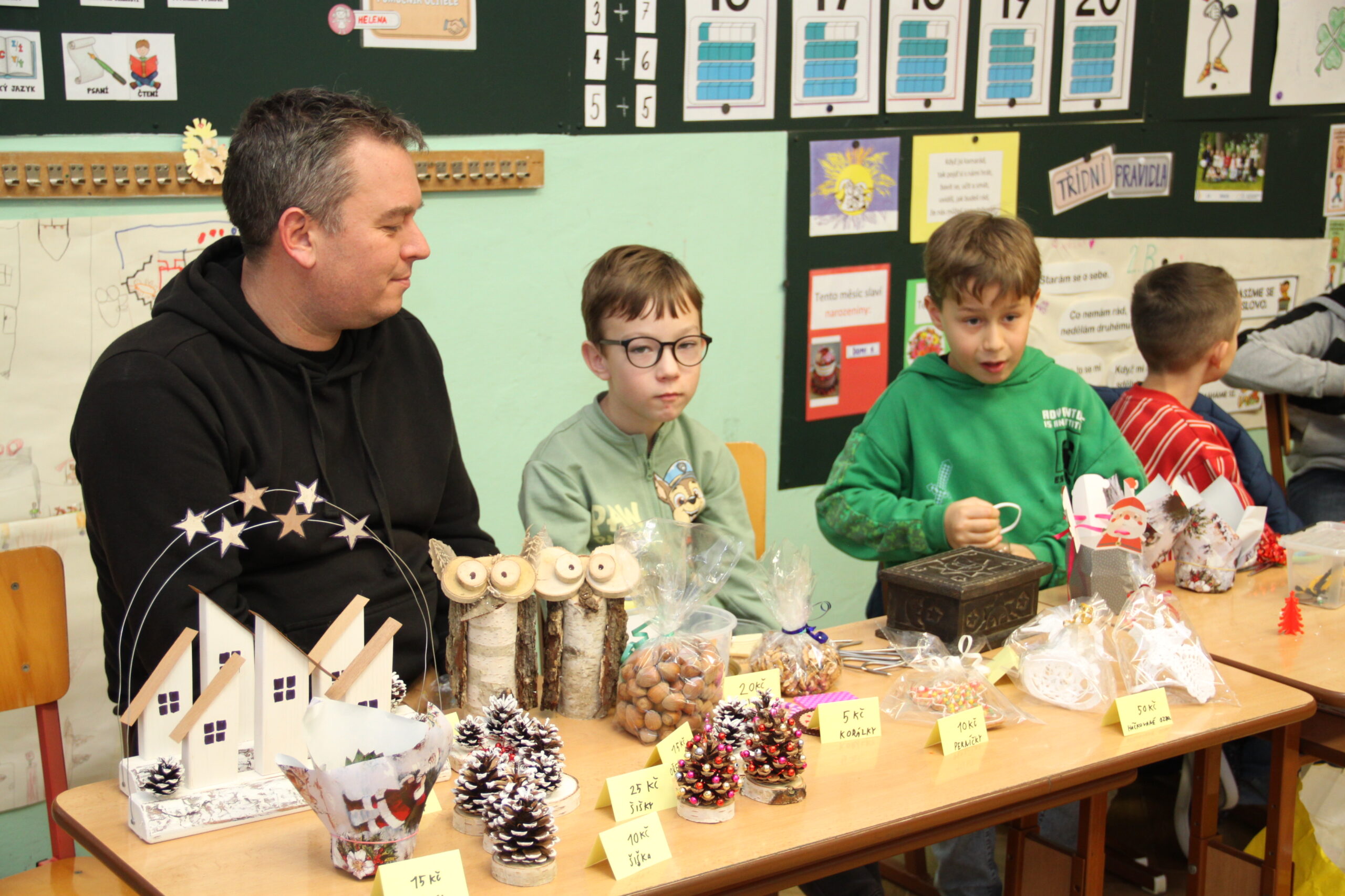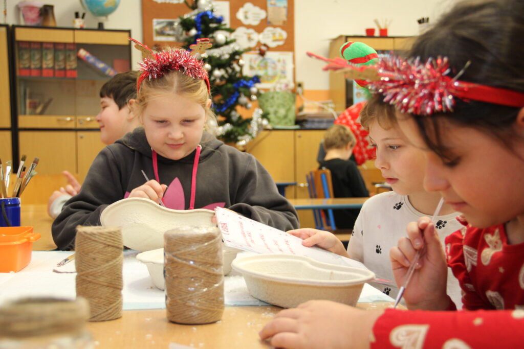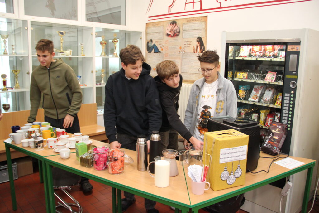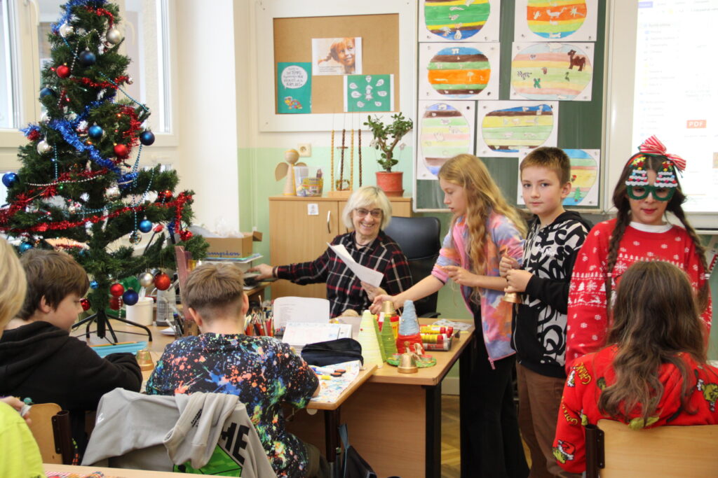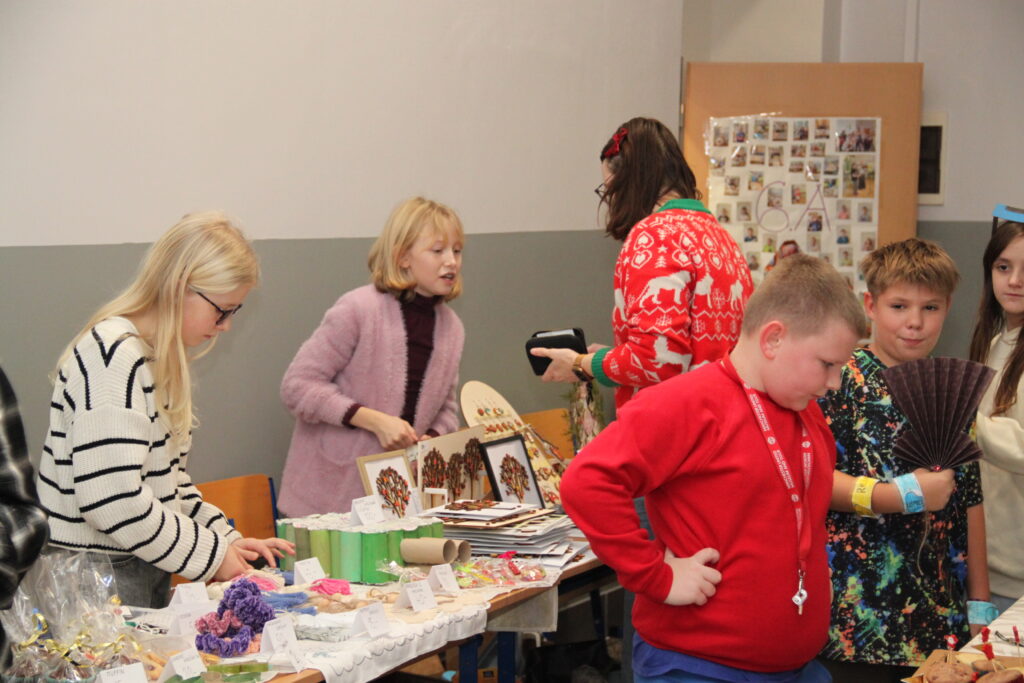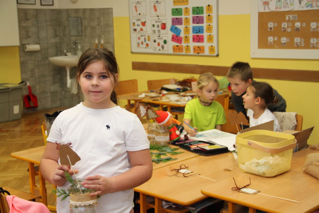 Dopoledne patřilo rukodělným aktivitám, kdy si žáci mohli vyzkoušet nejrůznější výtvarné techniky a vytvořit si drobné dárky či ozdoby. S potěšením jsme přivítali také děti z našich mateřských školek, které si u nás s pomocí starších spolužáků vyrobily svá vánoční přáníčka. Odpoledne následoval prodejní jarmark. Stánky zaplnily svícny, věnce, svíčky, sladké dobroty i drobné dárečky, které děti s pečlivostí a nadšením připravovaly i několik týdnů. Návštěvníci si navíc mohli pochutnat na výborné kávě v naší fairtradové kavárně. Prodej vlastních výtvorů je pro žáky každoročně velkou motivací. I letos se za podpory žákovského parlamentu rozhodli část ze svého výtěžku darovat na charitativní účely, čímž potvrdili smysl Vánoc a ukázali svou empatii a ochotu pomáhat.