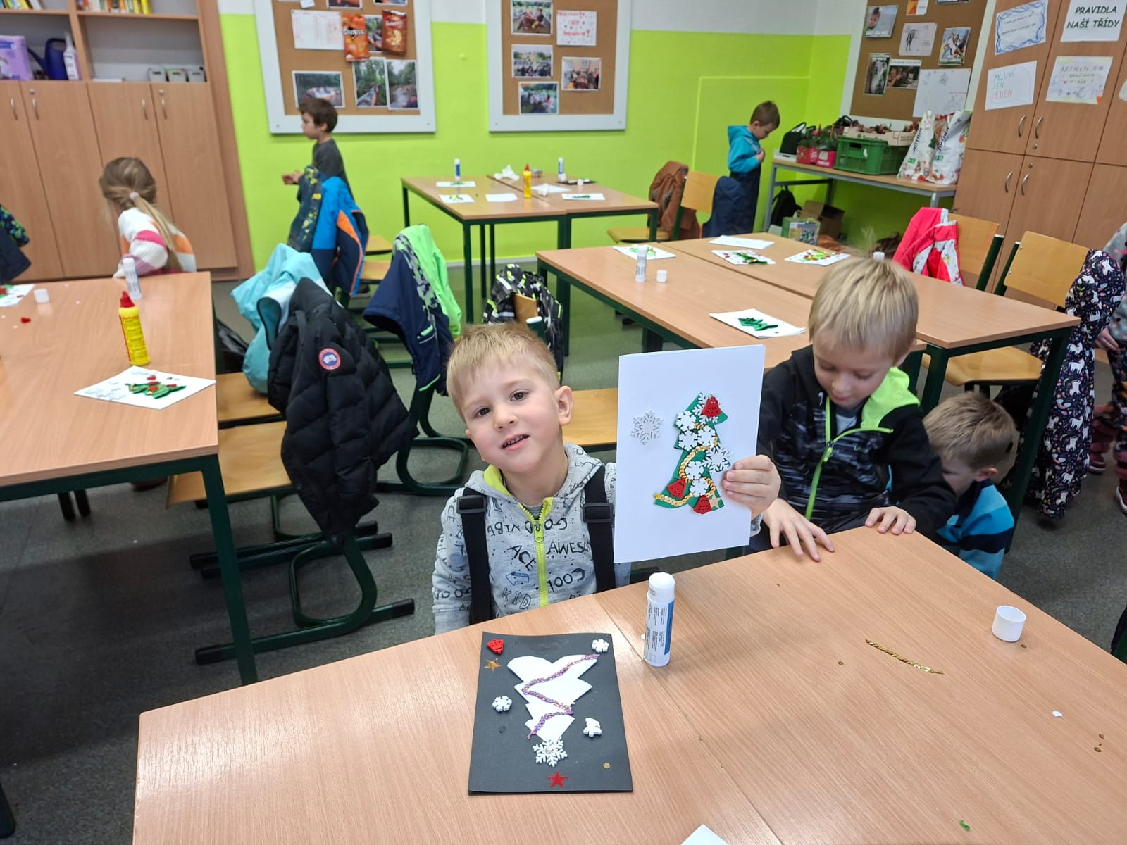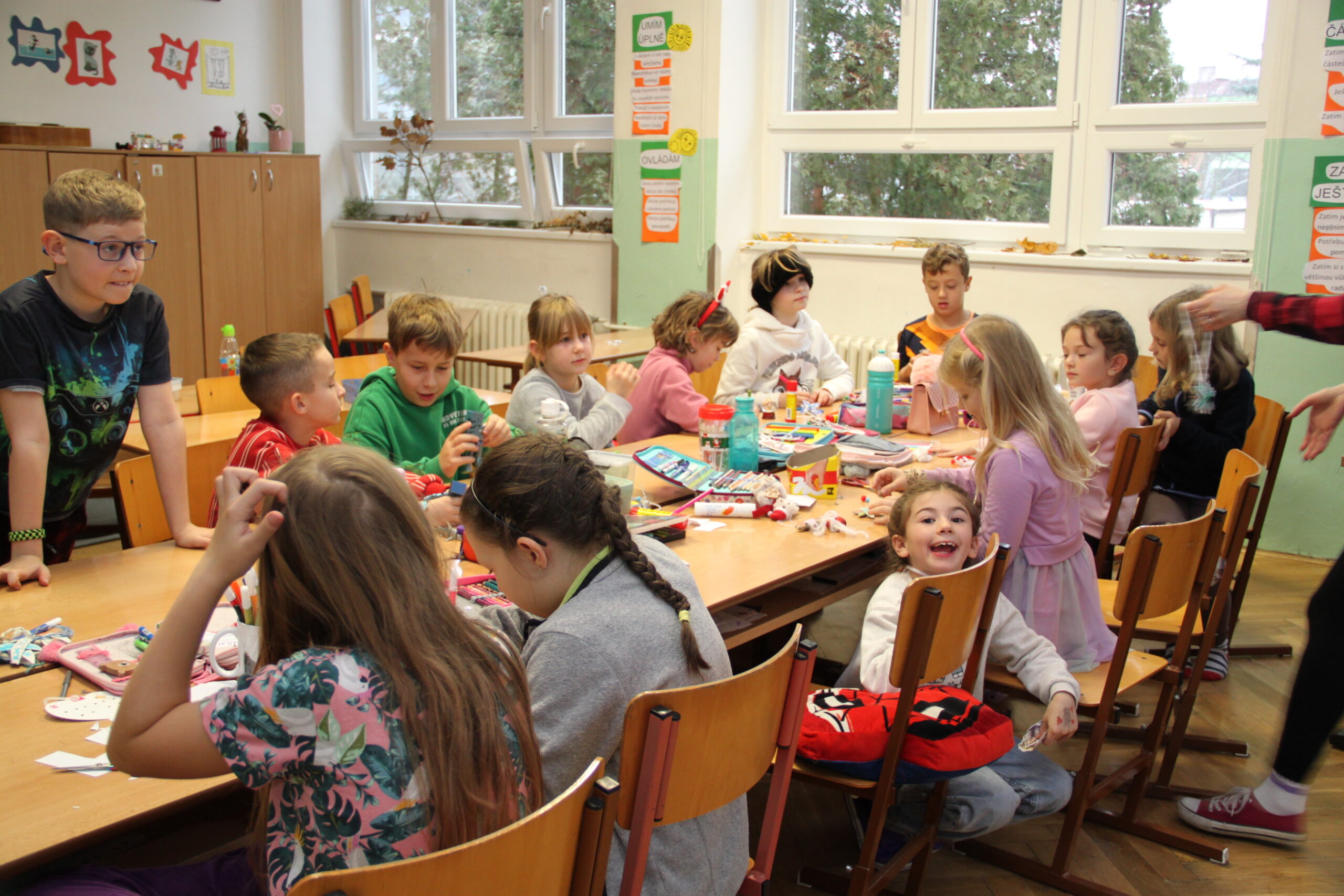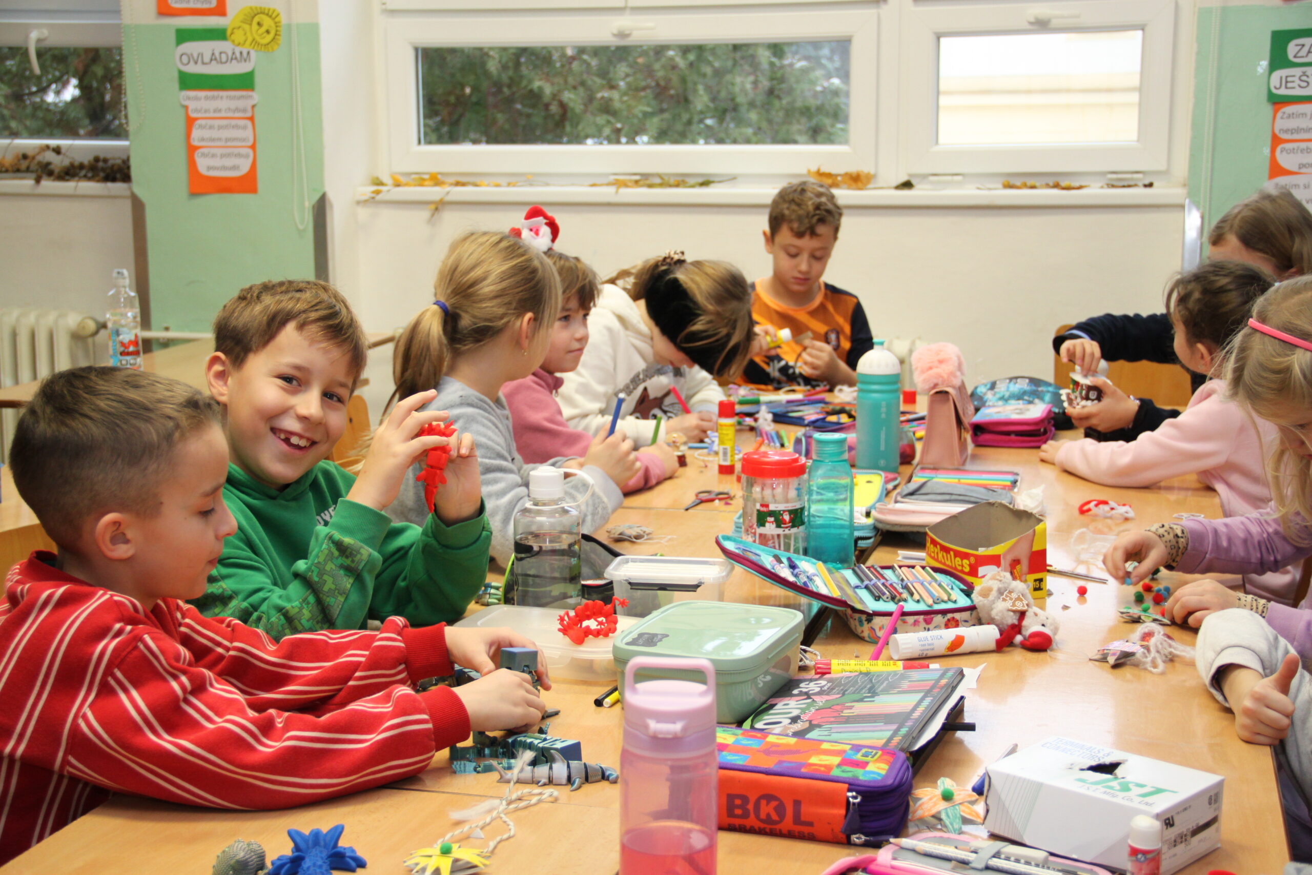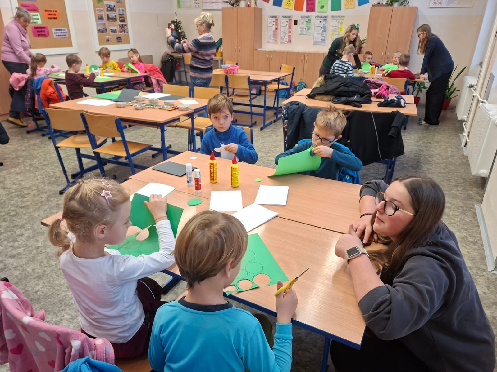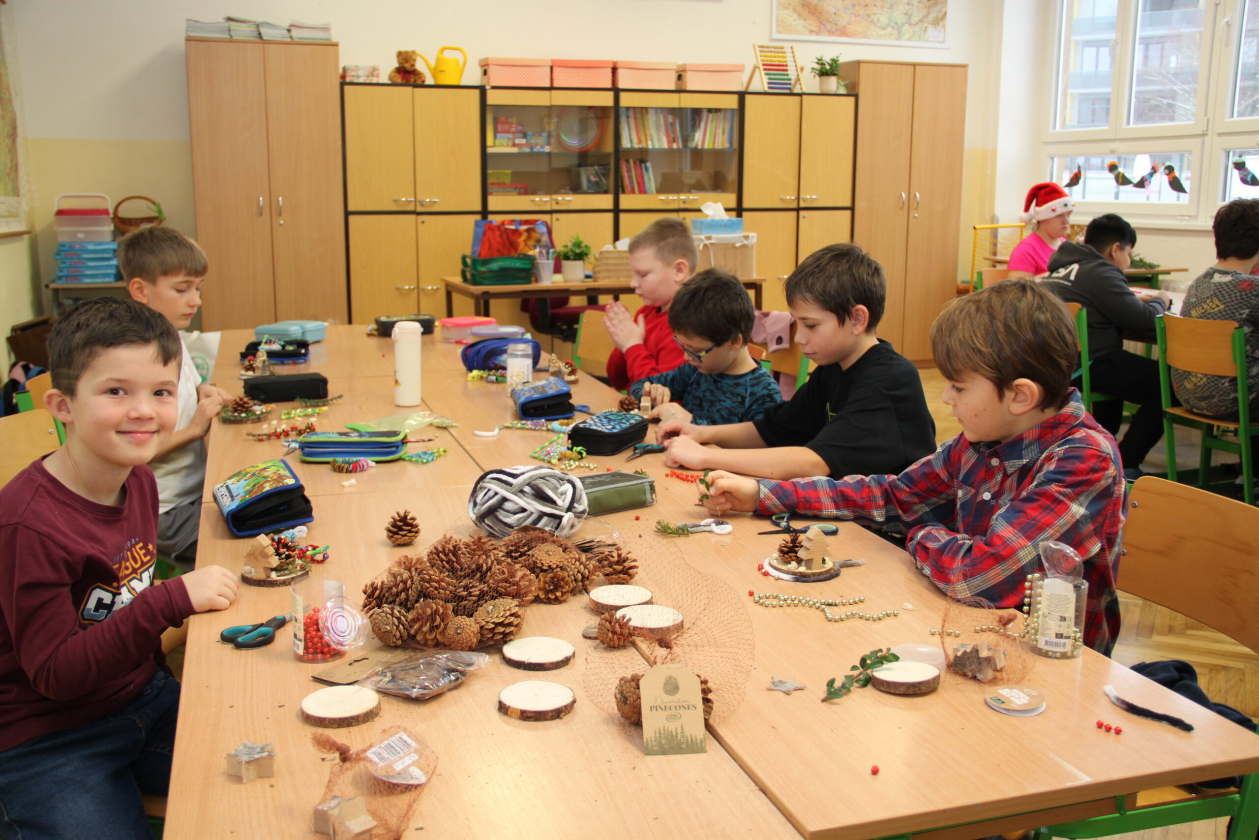 Dopoledne patřilo rukodělným aktivitám, kdy si žáci mohli vyzkoušet nejrůznější výtvarné techniky a vytvořit si drobné dárky či ozdoby. S potěšením jsme přivítali také děti z našich mateřských školek, které si u nás s pomocí starších spolužáků vyrobily svá vánoční přáníčka. Odpoledne následoval prodejní jarmark. Stánky zaplnily svícny, věnce, svíčky, sladké dobroty i drobné dárečky, které děti s pečlivostí a nadšením připravovaly i několik týdnů. Návštěvníci si navíc mohli pochutnat na výborné kávě v naší fairtradové kavárně. Prodej vlastních výtvorů je pro žáky každoročně velkou motivací. I letos se za podpory žákovského parlamentu rozhodli část ze svého výtěžku darovat na charitativní účely, čímž potvrdili smysl Vánoc a ukázali svou empatii a ochotu pomáhat.