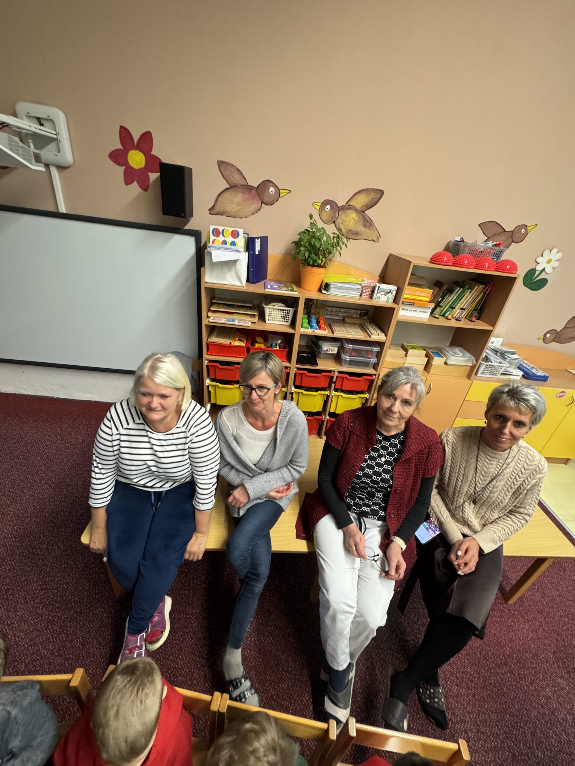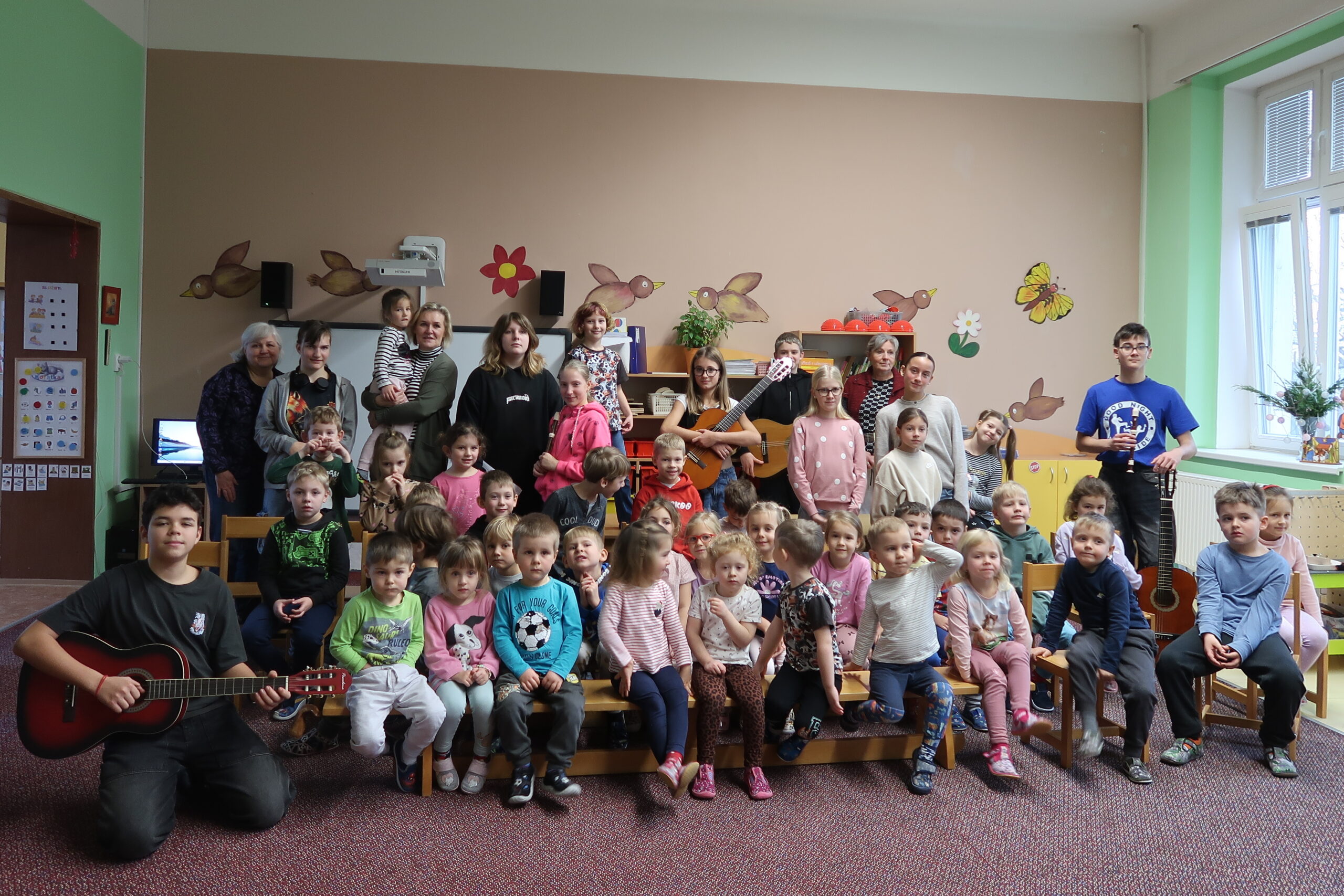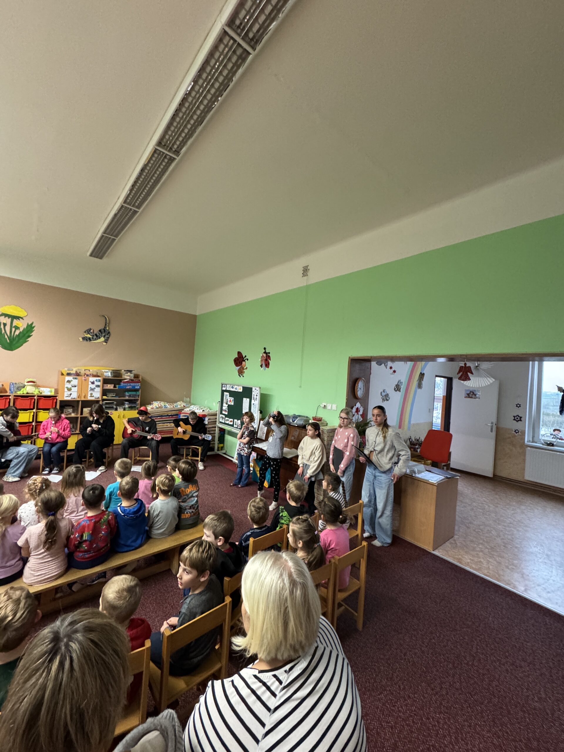 Paní učitelky Šilhábelová a Slavíčková s našimi zpěváky a muzikanty si udělaly dvě příjemná dopoledne se svými kolegyněmi z mateřinek a se všemi dětmi.