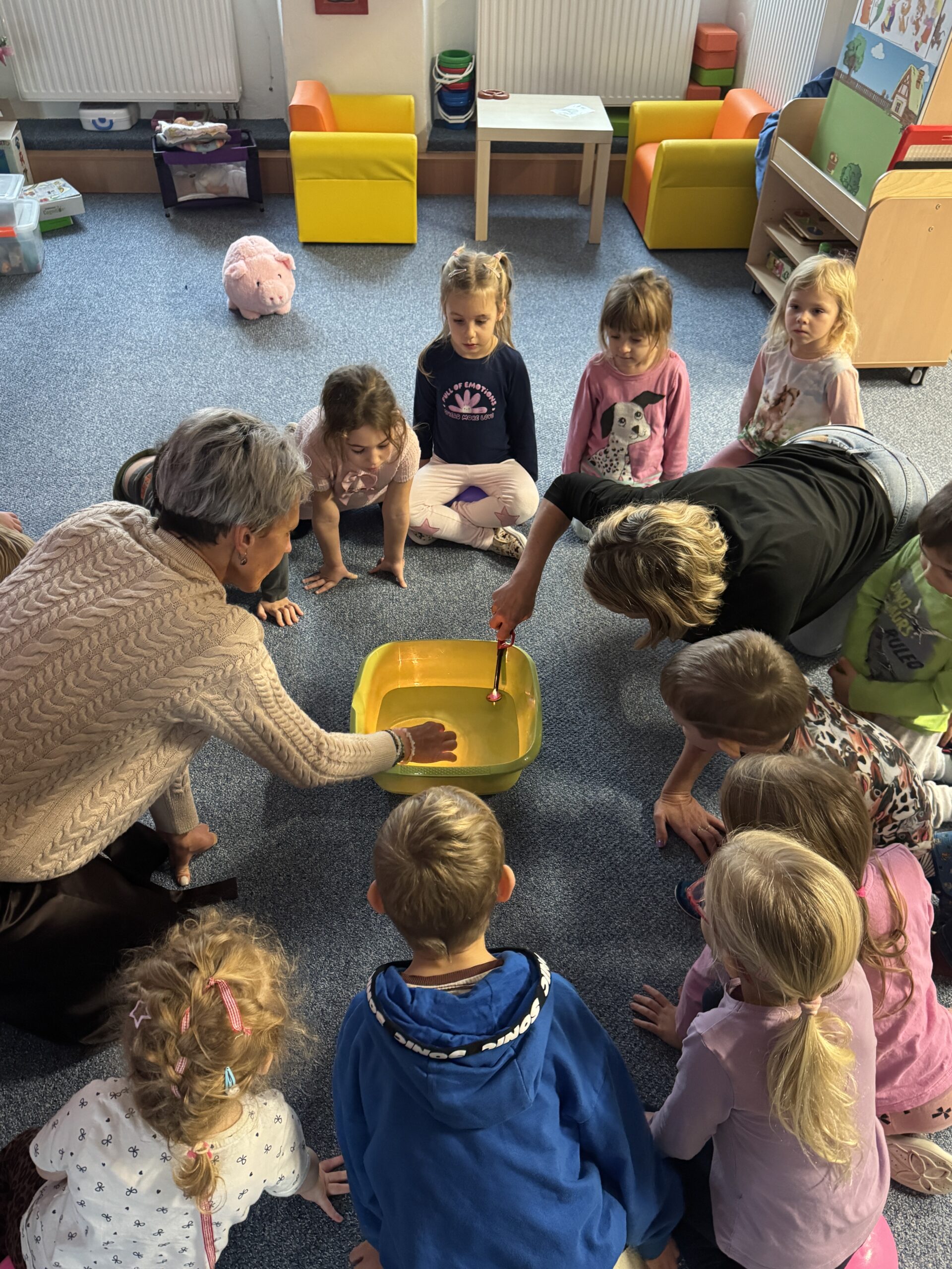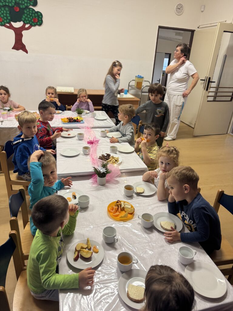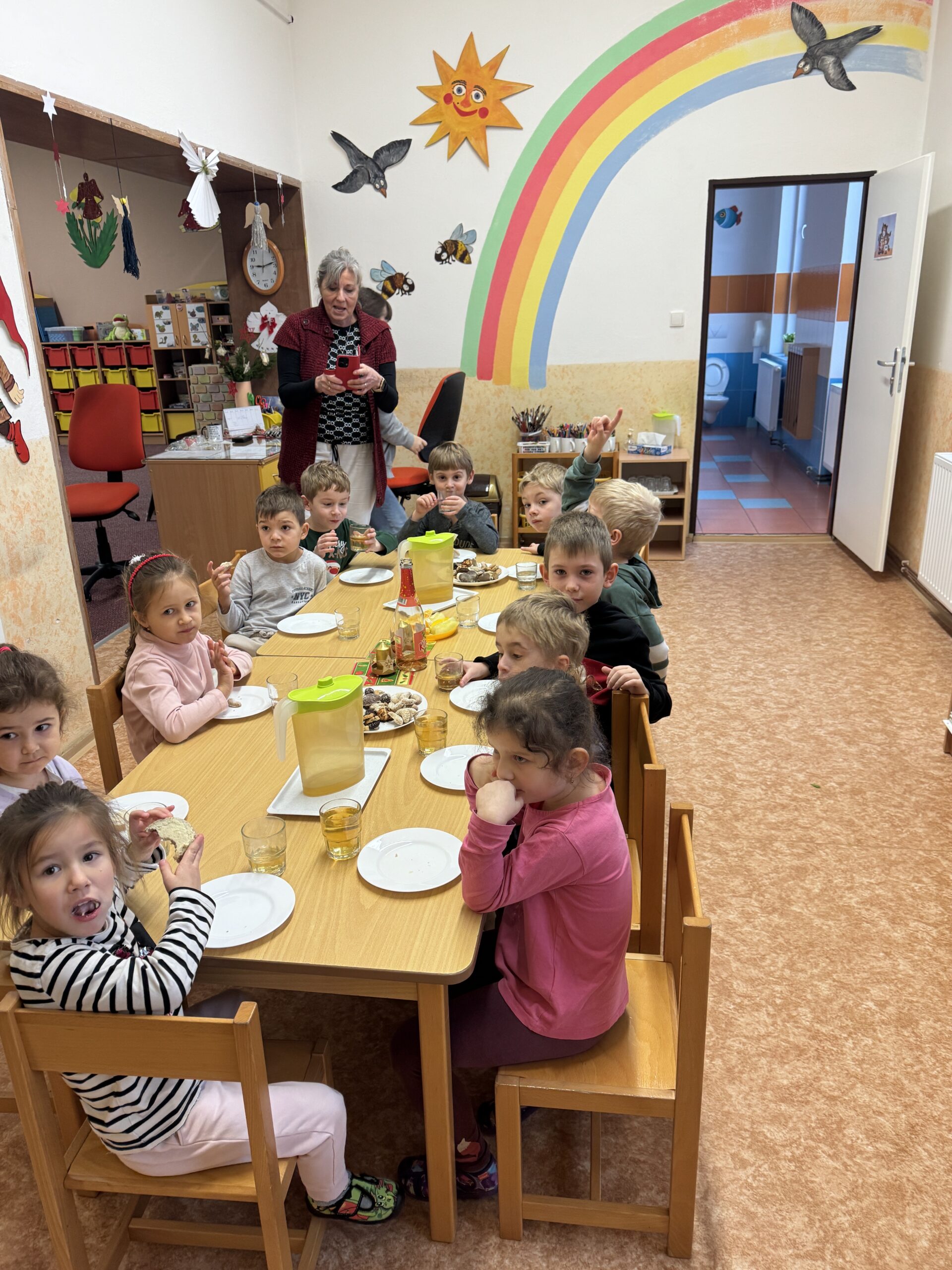 Paní učitelky Šilhábelová a Slavíčková s našimi zpěváky a muzikanty si udělaly dvě příjemná dopoledne se svými kolegyněmi z mateřinek a se všemi dětmi.
