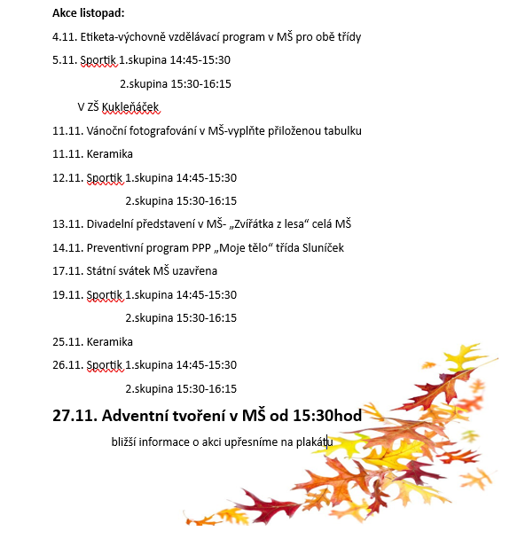 Listopad v MŠ Plačice