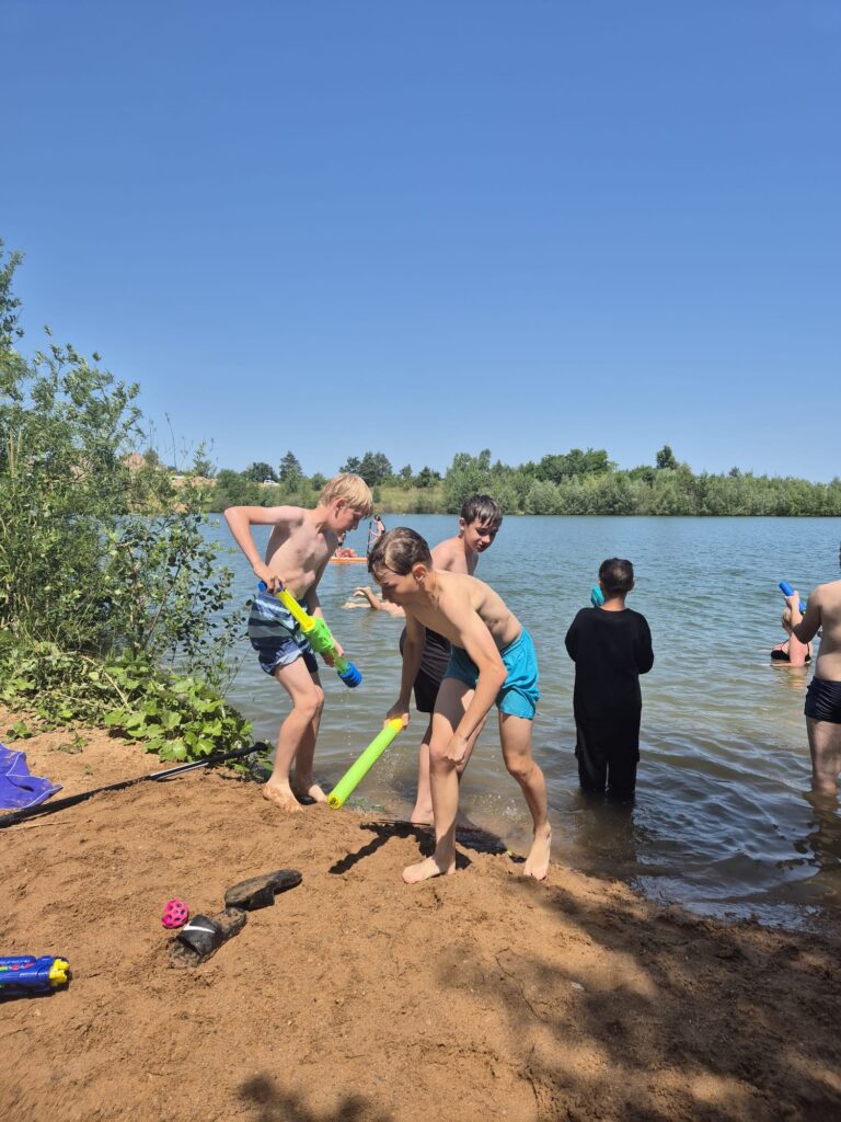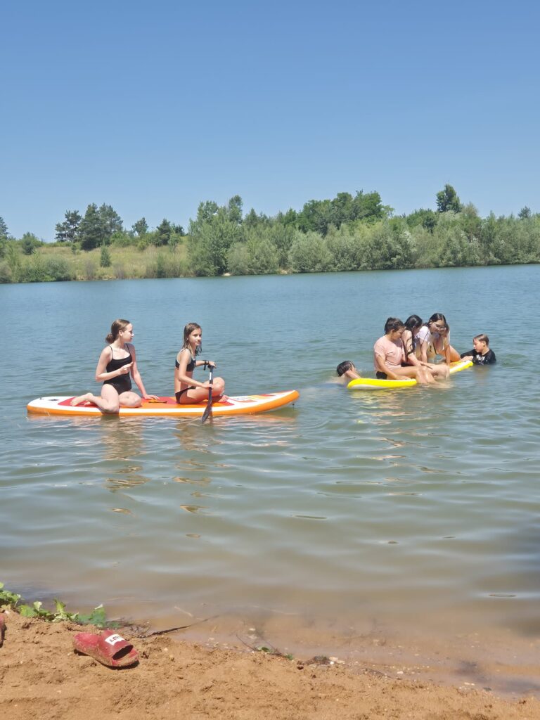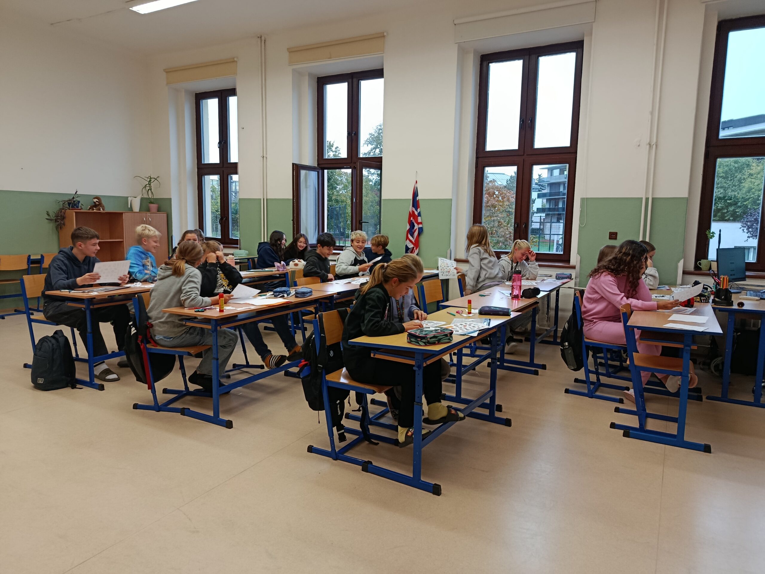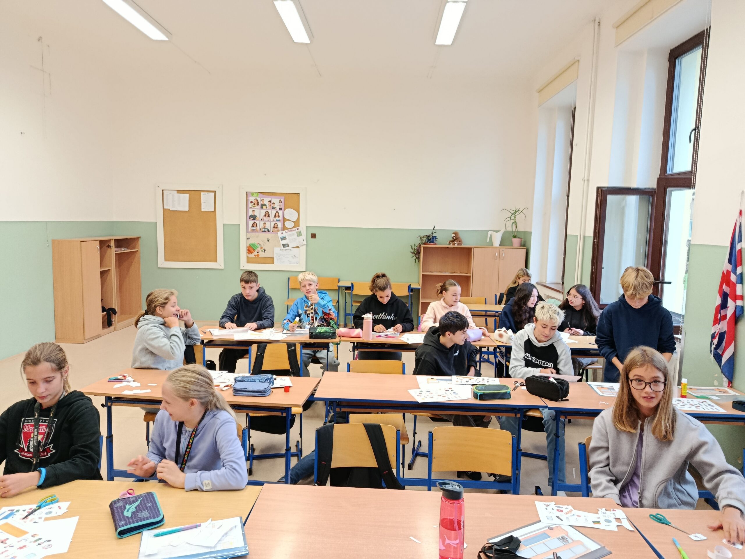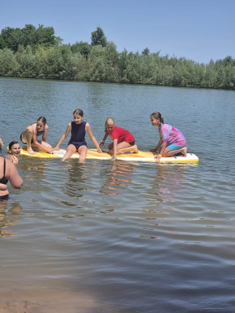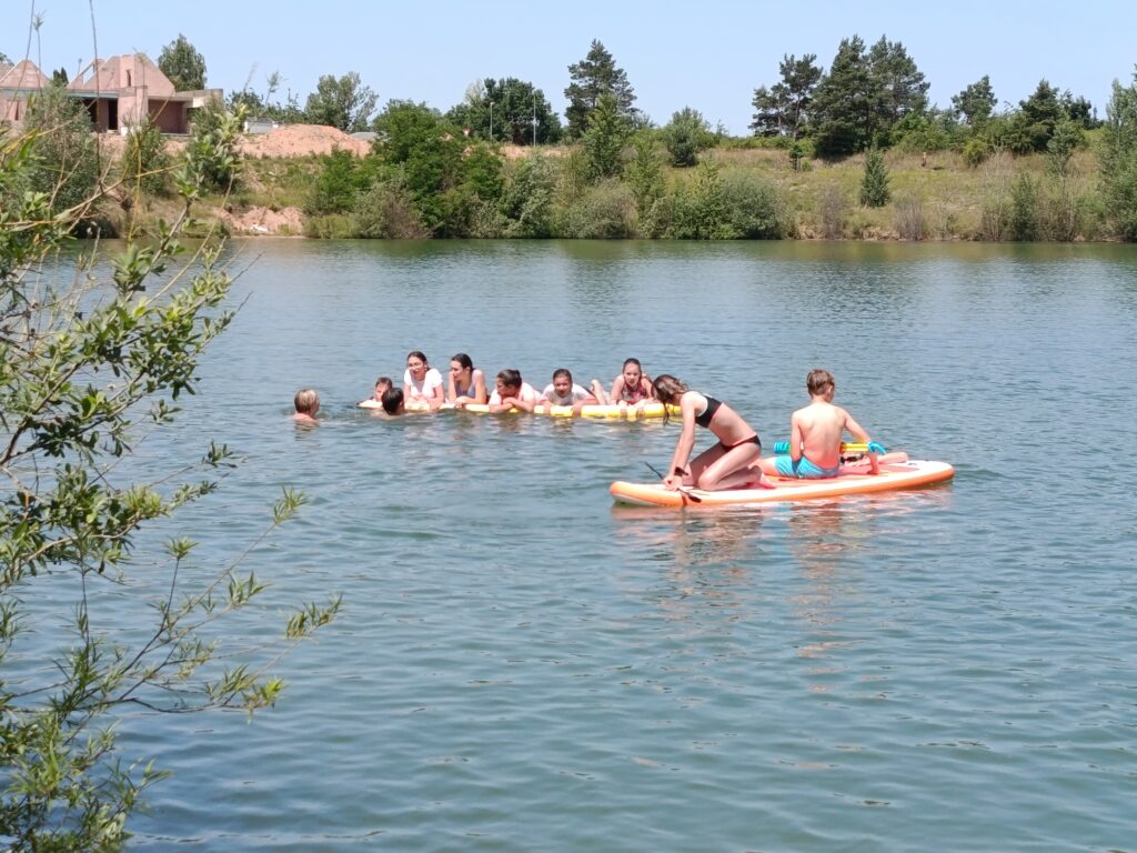 Úterní den začal slunečně, ale během dopoledne se počasí trochu zkazilo. Ráno jsme zahájili dobrovolným výklusem, ale ne všem se chtělo z vyhřátých pelechů 🙂 Dopoledne jsme stihli venku tak tak postřehový závod a slepý slalom, ke konci nás déšť zahnal do společenské místnosti, kde děti tvořily týmové vlajky pro odpolední soutěž. Část odpoledního programu opět probíhala uvnitř, boj o ostrovy s vlajkami jsme už ale zvládli za svitu sluníčka na sportovním hřišti. Večerní program byl dnes klidnější, druhý den nám dal všem celkem zabrat, a tak jsme společně hráli společenské hry, četli, kreslili a zapisovali do deníků. Všechny Vás moc zdravíme a posíláme fotky! 🙂