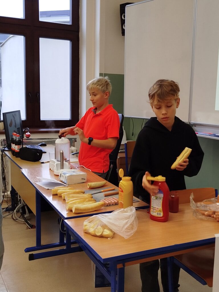 Zakončení letošního školního roku proběhlo slíbeným přespáním ve škole, na které se děti dlouhou dobu moc těšily. V rámci zahradní bojovky děti postupně ve skupinách sesbíraly indicie a tím zjistily, co se během společného podvečera bude dít. Zkusili jsme si společně připravit i rozdělat oheň a sehnat i klacky na opékání. Vše se nám bez problémů podařilo, děti jsou rození trempové. K mému překvapení dokonce ani žádný špekáček neskončil v ohništi a tak jsme všichni úspěšně povečeřeli. Noc byla trochu neklidná, přeci jen 20 dětí v jedné třídě a bouřka za okny udělá své. Nakonec se ale všem podařilo usnout a opravdu přespat ve škole 🙂